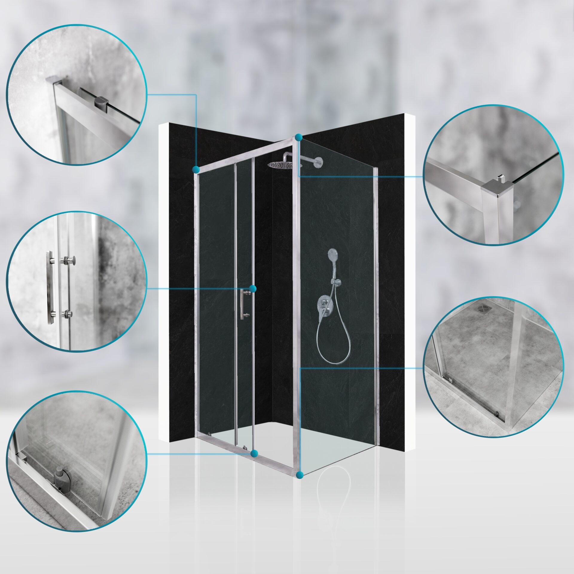 Innowacyjny system AluShield™, oparty na anodowanym i malowanym proszkowo aluminium klasy architektonicznej, zapewnia wyjątkową odporność na wilgoć, zarysowania i korozję. Subtelne wykończenie oraz niewidoczne mocowania nadają kabinie nowoczesny, elegancki i spójny wygląd.