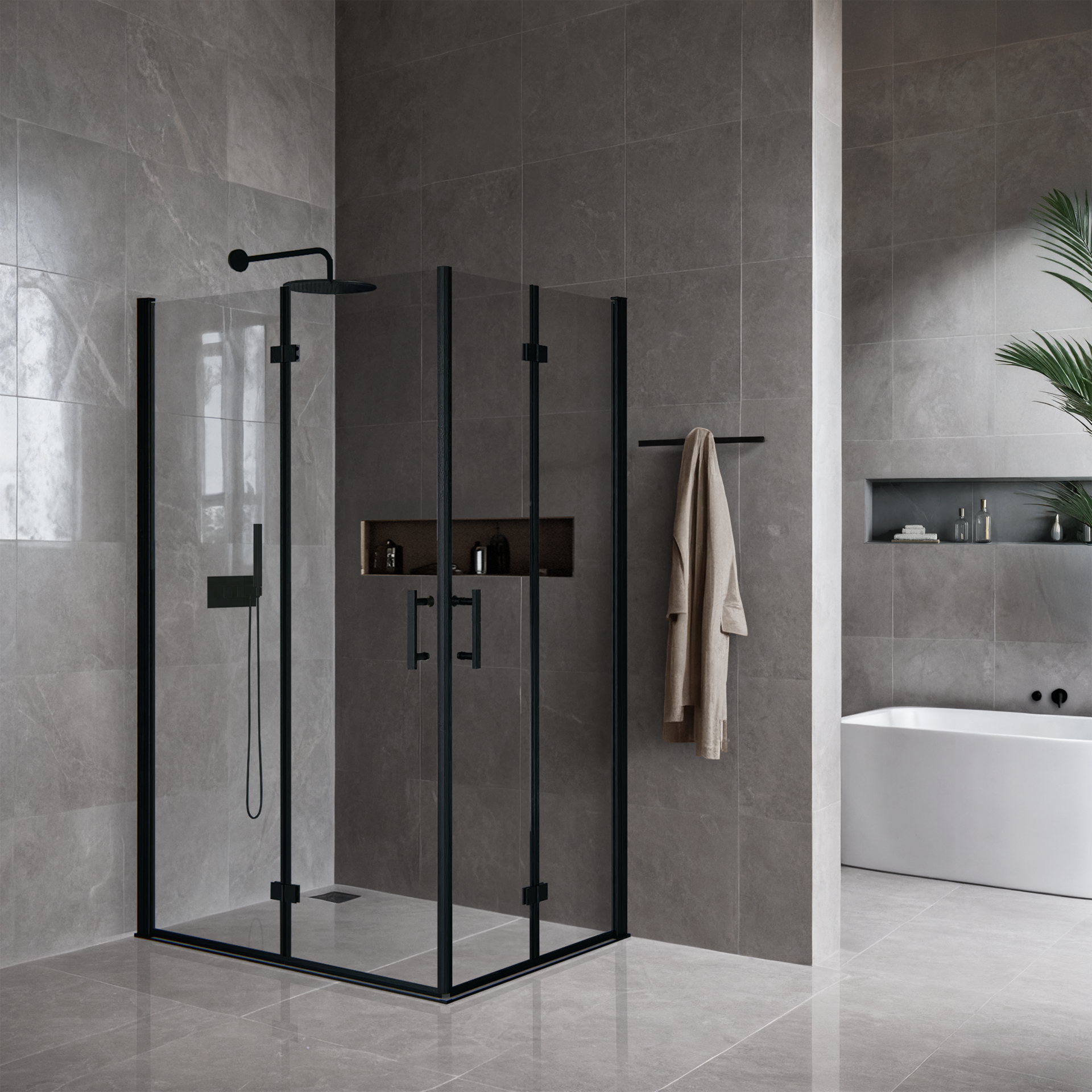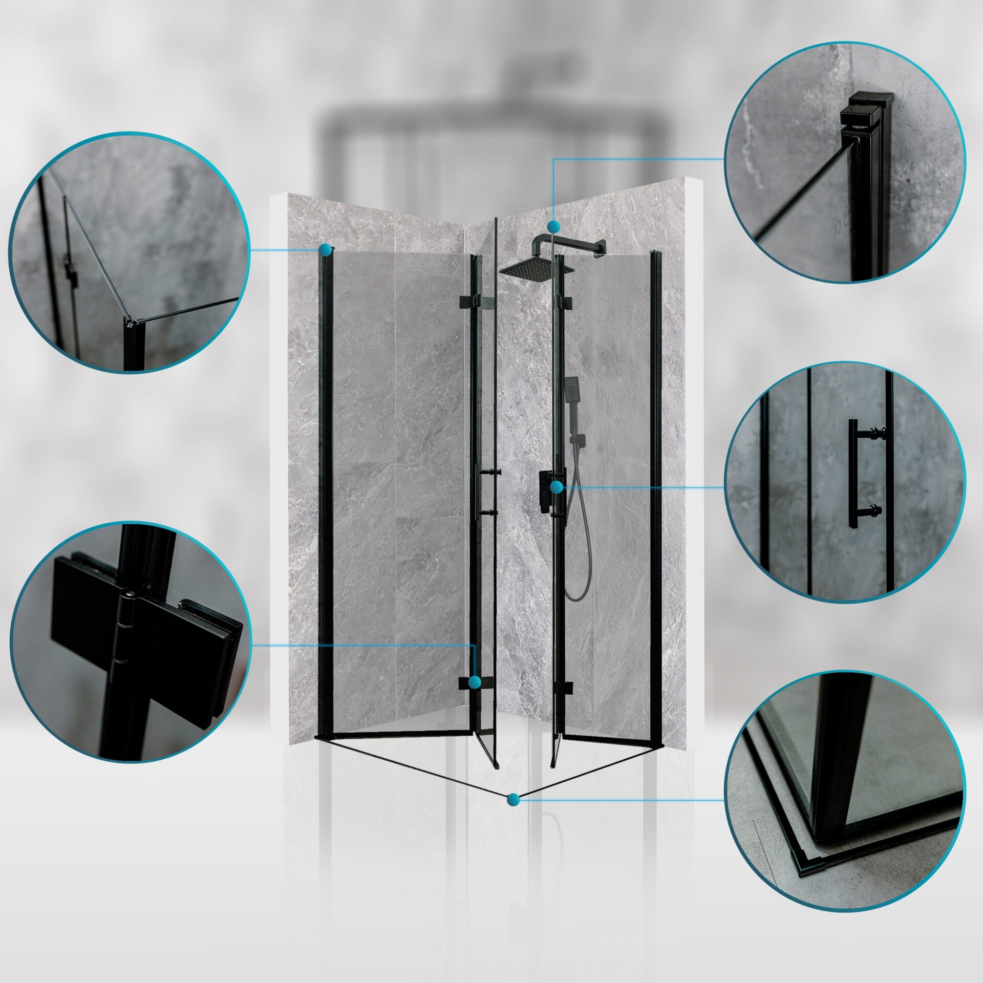 Innowacyjny system AluShield™, oparty na anodowanym i malowanym proszkowo aluminium klasy architektonicznej, zapewnia wyjątkową odporność na wilgoć, zarysowania i korozję. Subtelne wykończenie oraz niewidoczne mocowania nadają kabinie nowoczesny, elegancki i spójny wygląd.