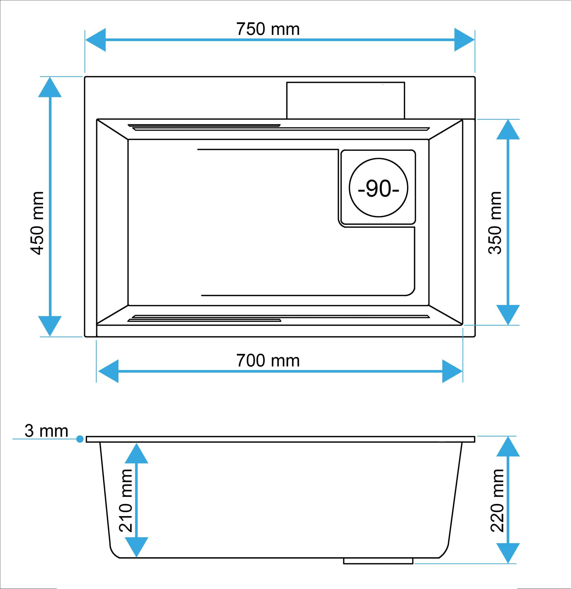 - wymiary zlewu: 750 × 450 mm