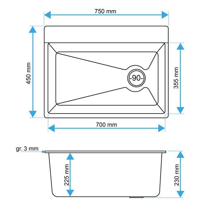 - wymiary zlewu: 750 × 450 mm